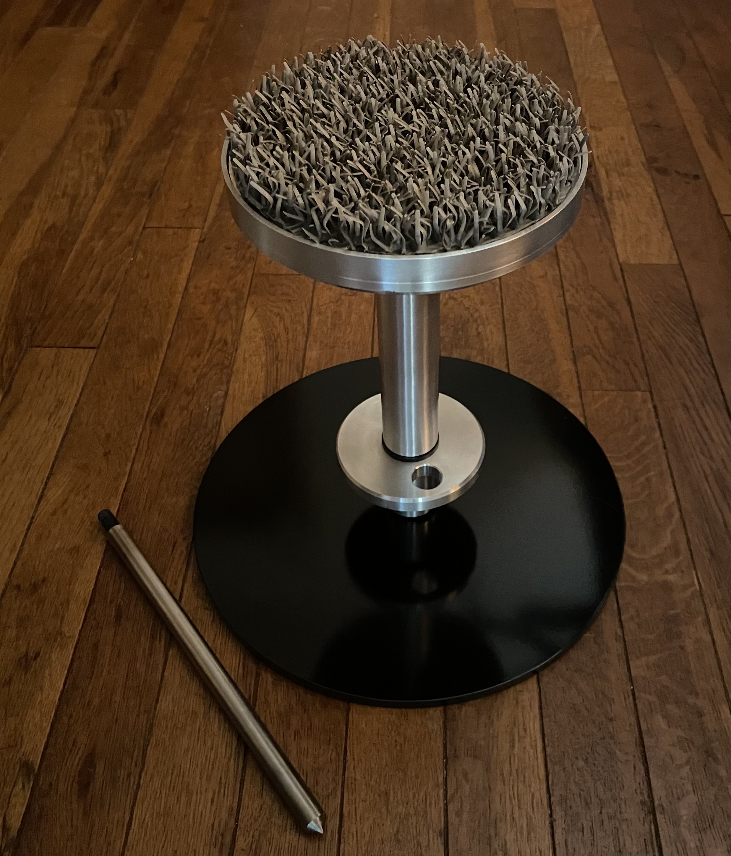 8-inch diameter perfect for large or small falcons. Made from a solid piece of American Black Walnut (no lamination) There are no dyes or stains used. This is the natural color of the wood. Stainless