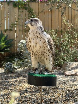 Selling a 2023 gyr saker. Captive bred. Large bird (1100+ grams). Was used for one season of abatement. Has been sitting the last few months so she’ll need some manning. Unfortunately the tips of her tail and outer primaries are frayed / broken due to improper transport. Price reflects this.