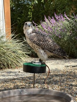 Selling a 2023 gyr saker. Captive bred. Large bird (1100+ grams). Was used for one season of abatement. Has been sitting the last few months so she’ll need some manning. Unfortunately the tips of he